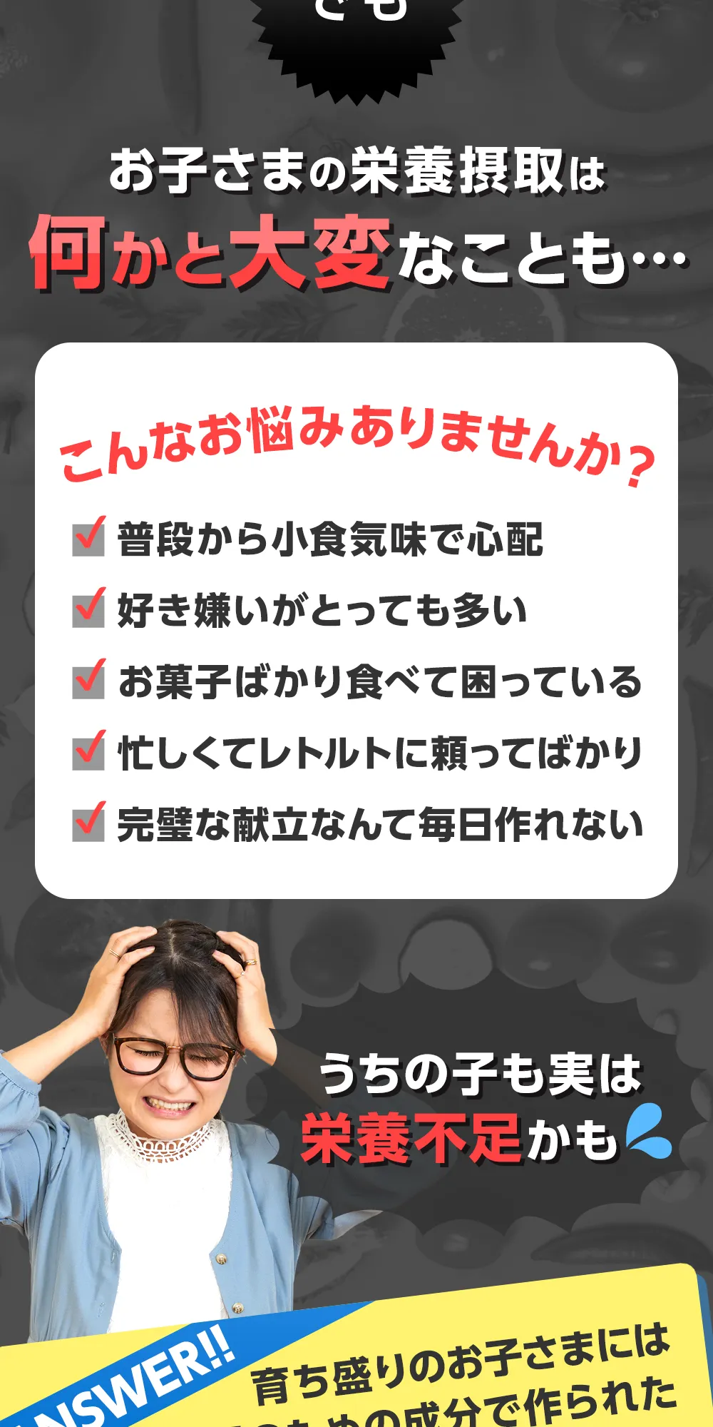 原材料名(オレンジ味) | 粉末還元麦芽糖水飴(国内製造)、食用焼成魚骨粉、クリーミングパウダー(デキストリン、植物油脂、乳糖、脱脂粉乳)、国産野菜ミックス(オクラ末、キャベツ末、ケール末、ニンジン末、カボチャ末、ゴボウの根末、紫イモ末、サトイモ末、シイタケ末、ブロッコリー末、アシタバ末、アスパラガス末、枝豆(大豆)末、コマツナ末、セロリ末、ダイコン末、ダイコン葉末、タマネギ末、パセリ末、ホウレンソウ末、レモン末、レンコン末)、ギャバ含有乳酸菌醗酵エキス、ラフマ葉抽出物、L-オルニチン塩酸塩、L-シトルリン、卵黄ペプチド、α-GPC 加工食品、DHA 粉末/香料、結晶セルロース、乳化剤、ステアリン酸Ca、ビタミン C、クエン酸、甘味料(ステビア)、微粒酸化ケイ素、ピロリン酸第二鉄、カゼインナトリウム、pH 調整剤、ビタミン A、L-アルギニン、酸化マグネシウム、抽出ビタミン E、セルロース、ナイアシン、ビタミン D、パントテン酸Ca、ビタミン B2、ビタミン B1、ビタミン B6、葉酸、酸化防止剤(ビタミン E)、キサンタンガム、ビタミン B12、(一部に乳成分・卵・大豆を含む) |